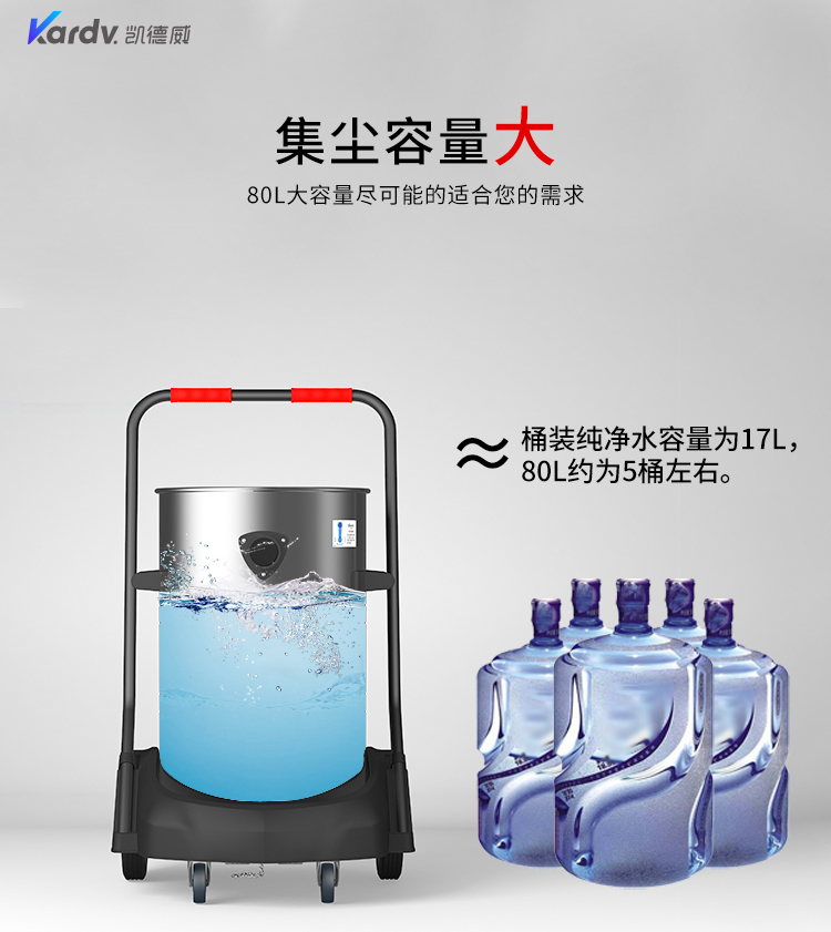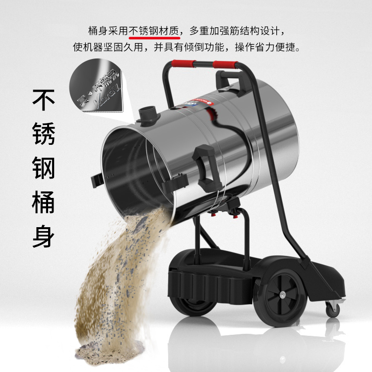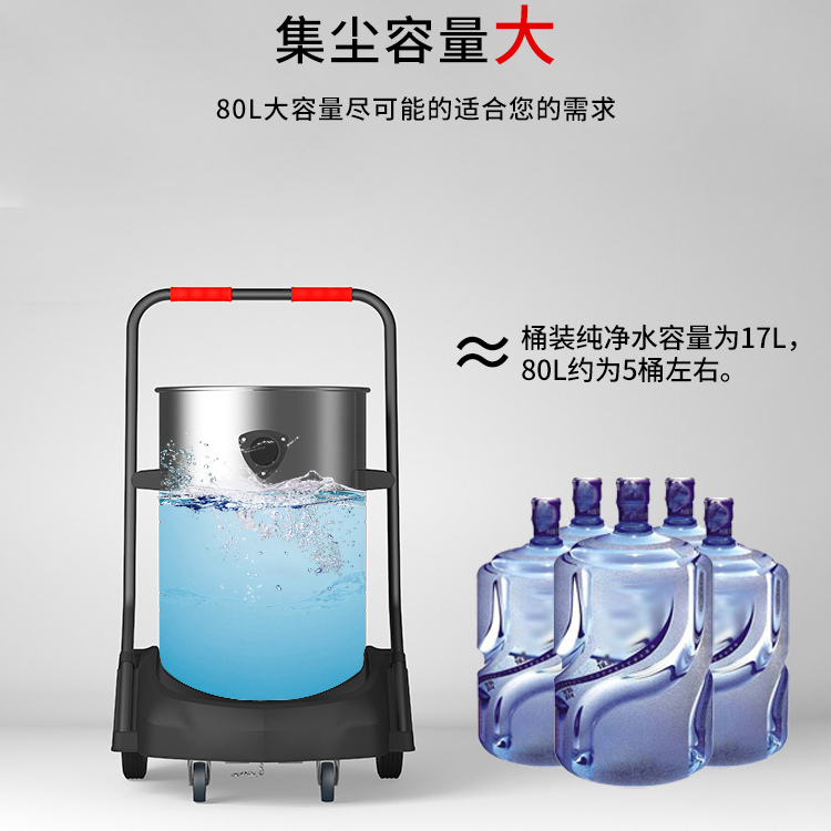 GS-3078S是一款工業(yè)型吸塵器,集塵桶為80L,為不銹鋼材質(zhì),配有車架,在移動時輕巧方便,車架底座為PP材質(zhì),底座上有置物格,可放置配件或工具方便收納和使用;可以用在工廠、倉庫或建筑工地等場所清理灰塵等,在商業(yè)環(huán)境中也可以使用。
