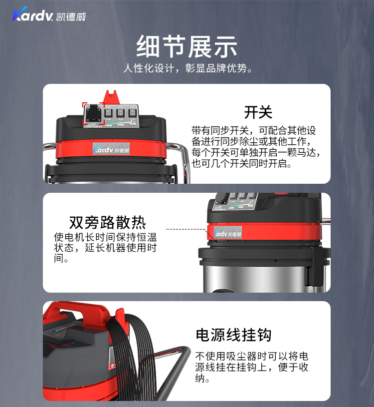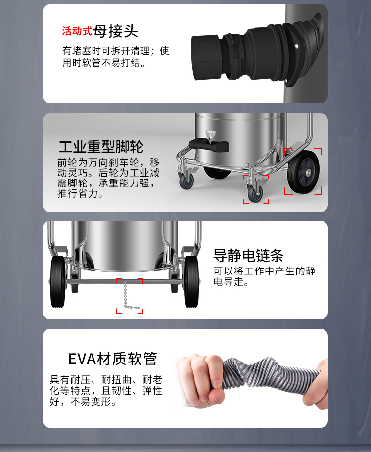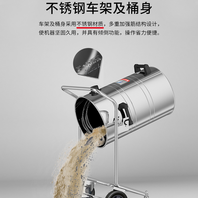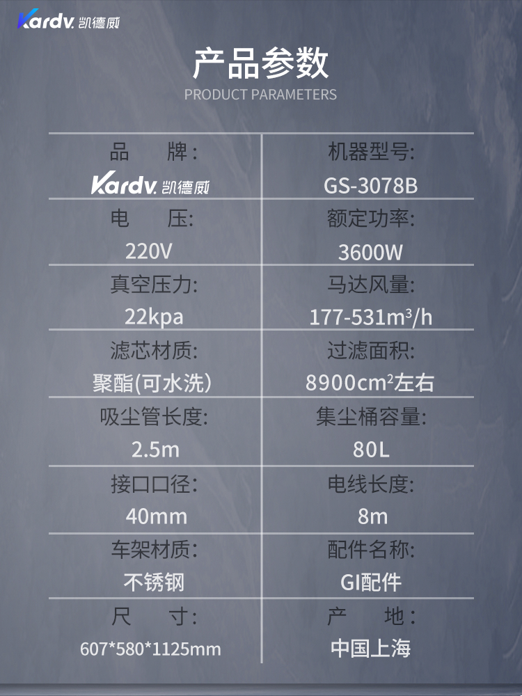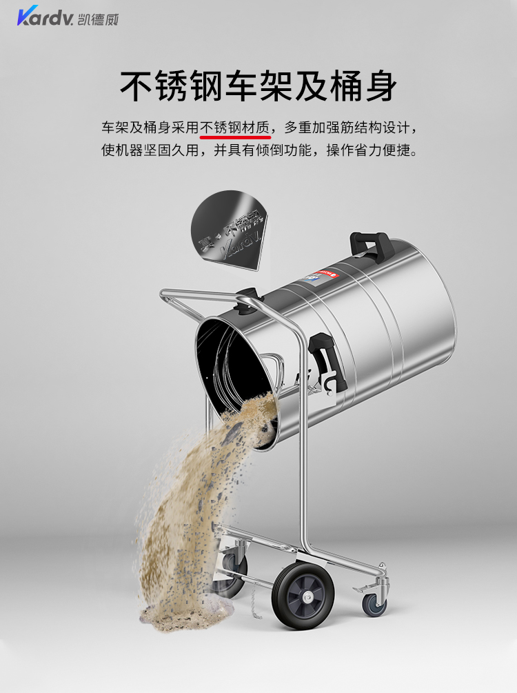 GS-3078B是一款工業(yè)型吸塵器,集塵桶為80L,為不銹鋼材質(zhì),配有不銹鋼車架,在移動(dòng)時(shí)輕巧方便;可以用在工廠、倉(cāng)庫(kù)或建筑工地等場(chǎng)所清理灰塵等,在商業(yè)環(huán)境中也可以使用。