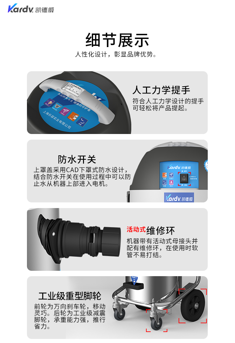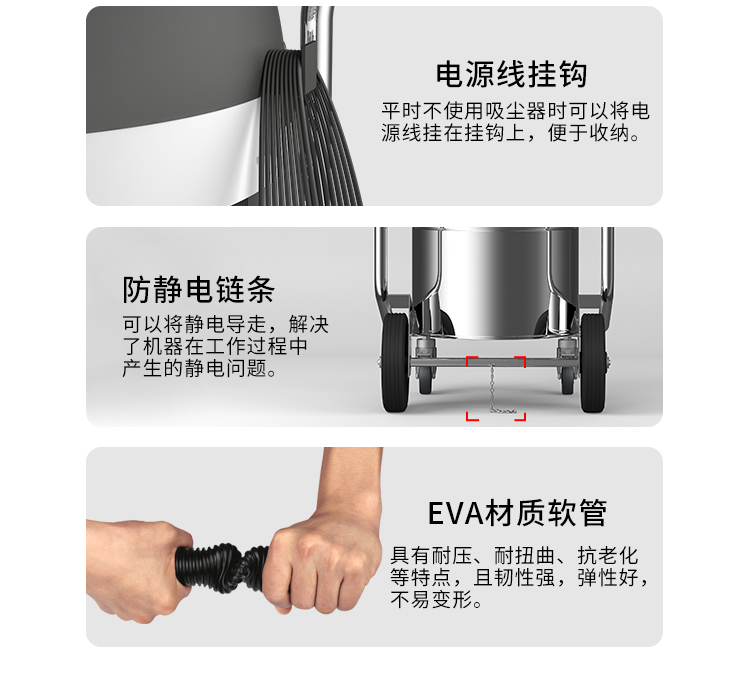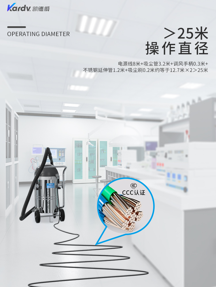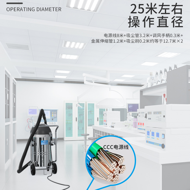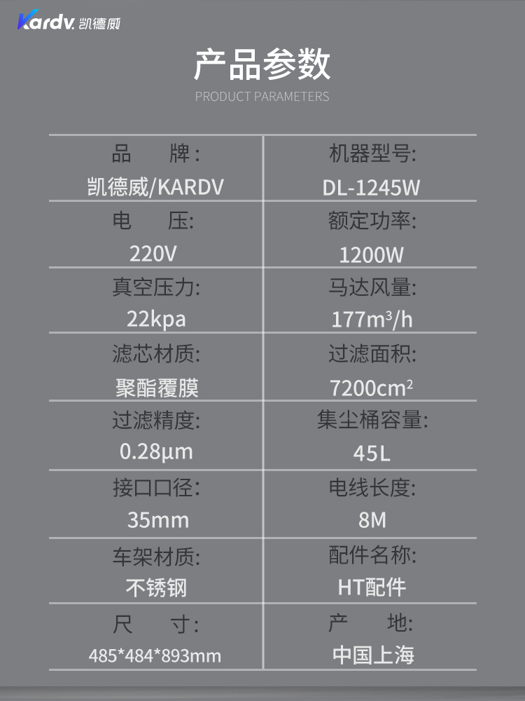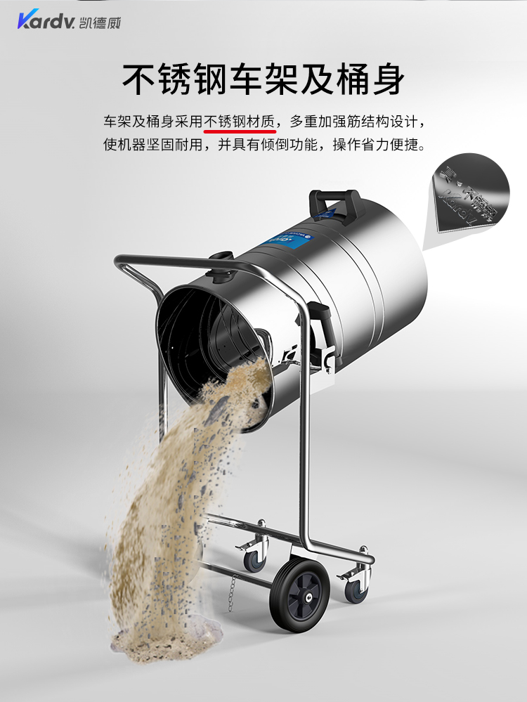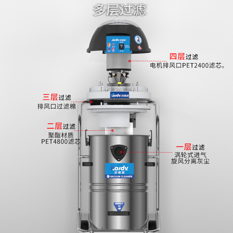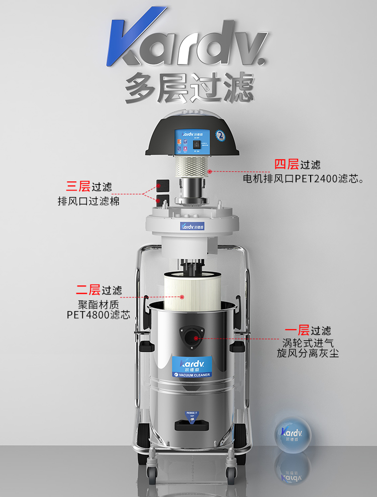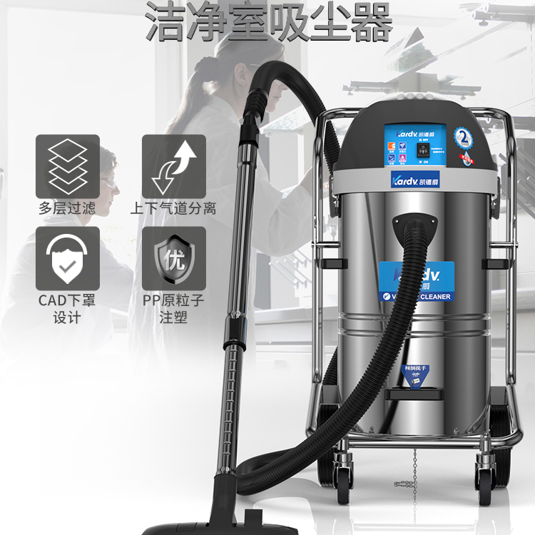 DL-1245W是一款工商業吸塵器,散熱上采用上下氣道分離,延長了排風的路徑及時間,所產生的聲音相對比普通的吸塵器聲音小;有可達45L左右的不銹鋼材質制成的集塵桶,同時它配有前輪為萬向輪并帶剎車的不銹鋼車架使用起來靈活輕便;多層過濾裝置,使排出來的空氣相對潔凈;可參考使用在實驗室,無塵車間,凈化車間等環境中。