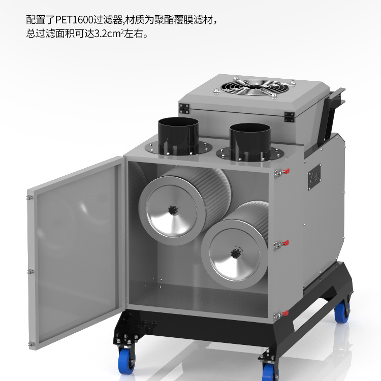 金屬焊接、激光切割、打磨作業時,大量煙塵懸浮在車間內,被吸入人體肺部影響身體健康,因此在焊接煙塵進入焊工呼吸區前把這些煙塵進行凈化處理。凱德威移動式焊接煙塵凈化器是一款治理焊接、切割、打磨時,產生在空氣中大量懸浮危害人體的細小煙塵顆粒而設計的凈化裝置,可移動式單機處理或多工位系統集中式處理。配有1根2.5米長的吸氣臂,在不同的工作地點移動靈活,操作方便。