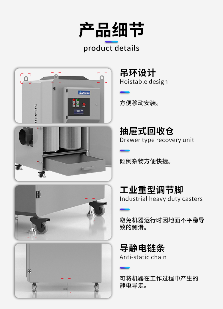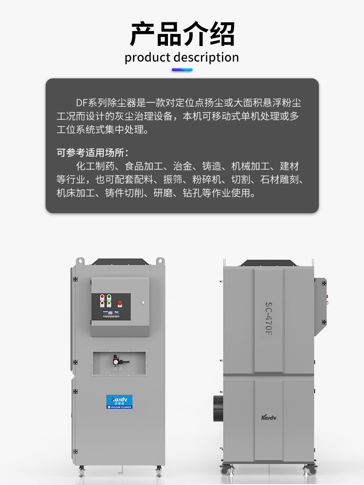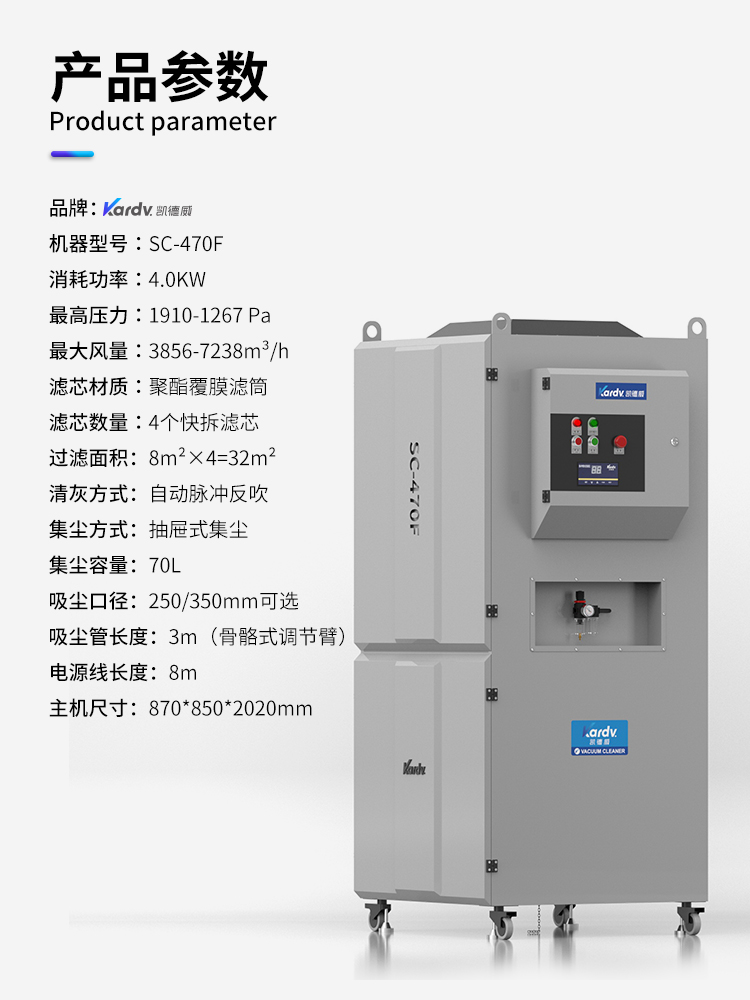凱德威工業除塵器SC-470,工廠車間用。可參考實用場所:化工制藥,食品加工,冶金、鑄造、機械加工、建材等行業。